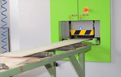 S tem strojem, ki ima rez 1,1mm dobimo maximalni izkoristek obdelovanca in zelo tanke nalepke z minimalno debelino 1,9mm. Stroj ima največjo višino razreza 160mm in širino: 310mm. S tem strojem, ki ima mazanje na zob, lahko razrezujemo tudi tropske lesove, kot je npr. tik.